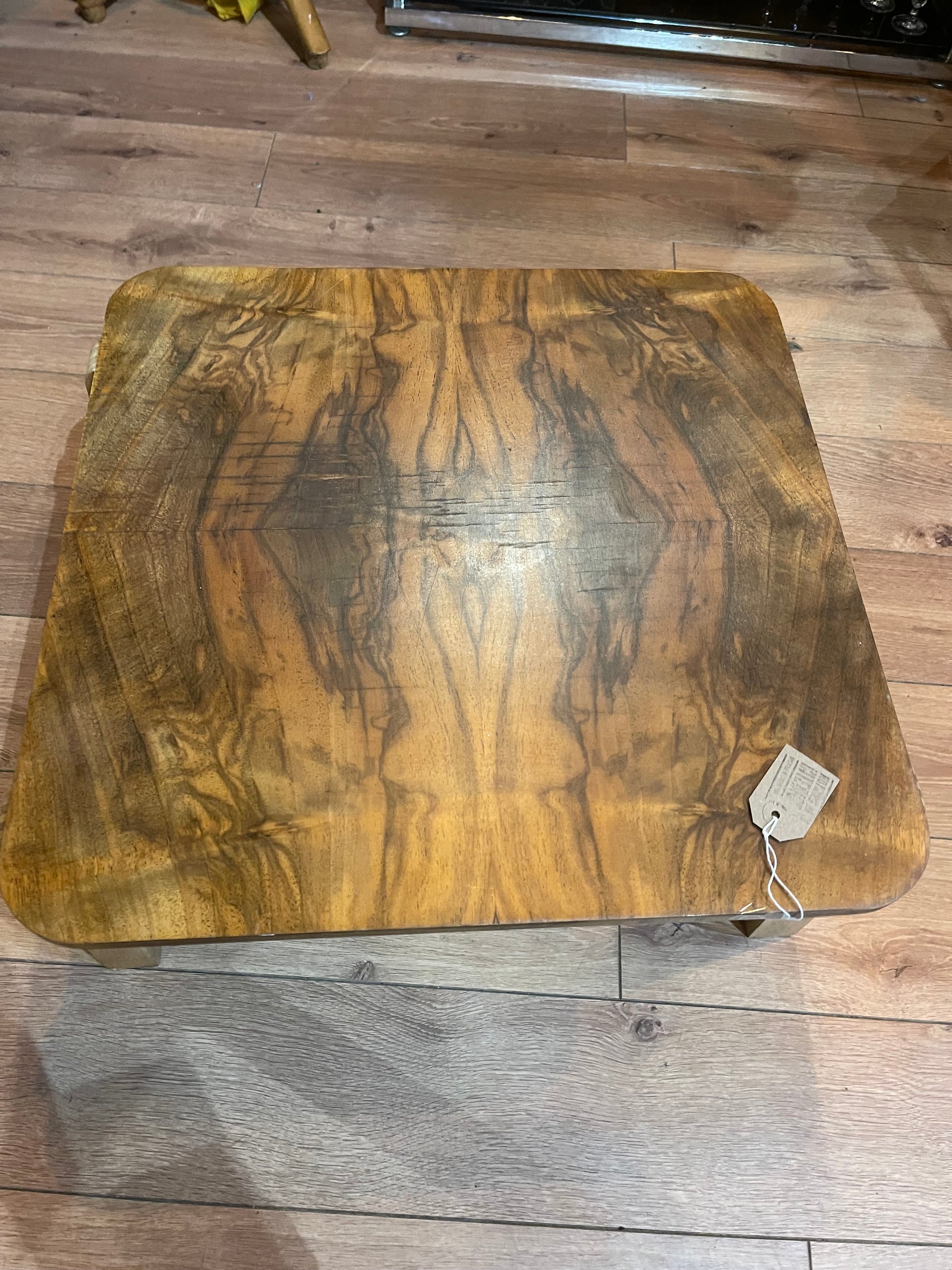 A beautiful walnut grain to the top and laminated birch legs make this square coffee table a stand out piece.